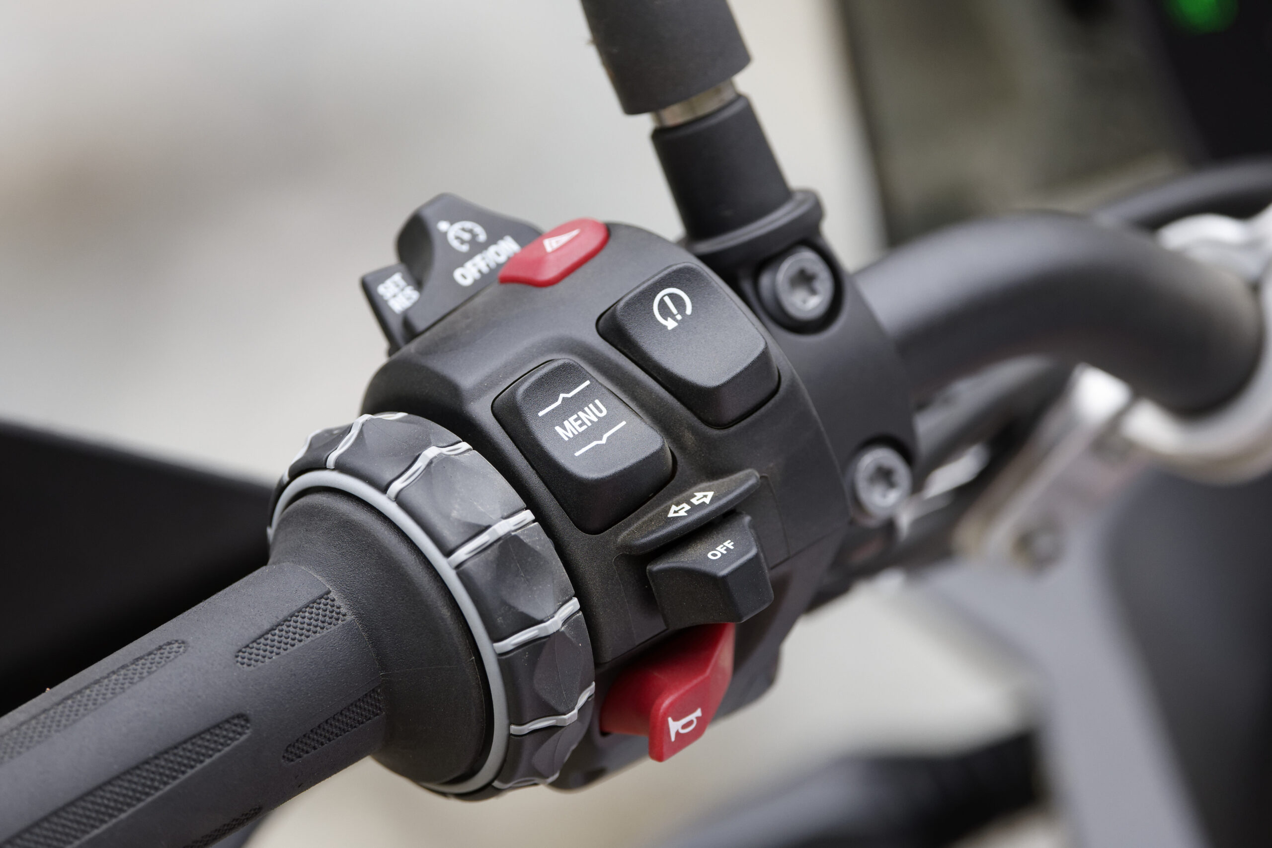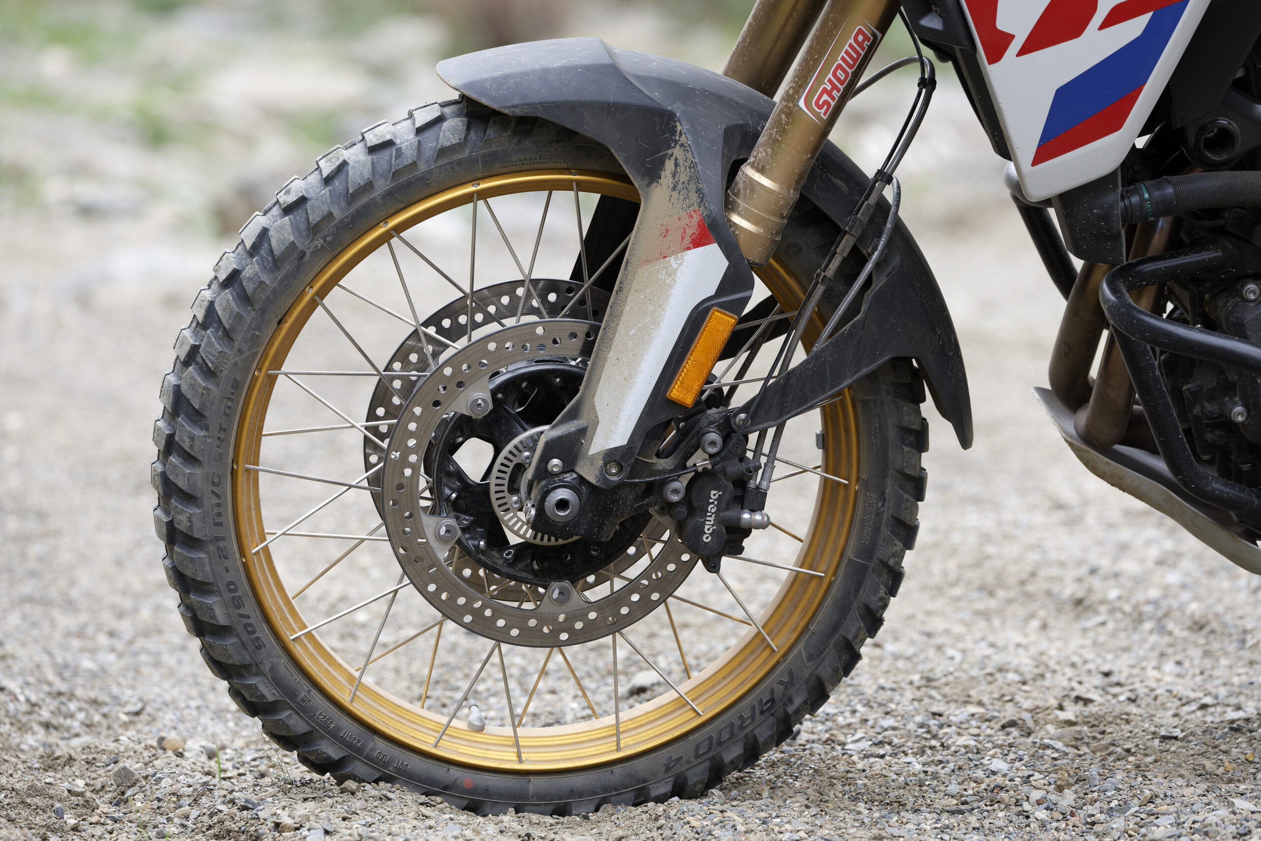 Su ergonomía se ha rediseñado por completo pensando en el pilotaje off-road: manillar más alto, reposapiés más bajos y un pedal de freno ajustable que facilita el control tanto sentado como de pie. El peso reducido —solo 219 kg— marca la diferencia cuando llega el terreno exigente, gracias a elementos como el depósito de plástico, la nueva parte trasera o el silenciador final Akrapovič.